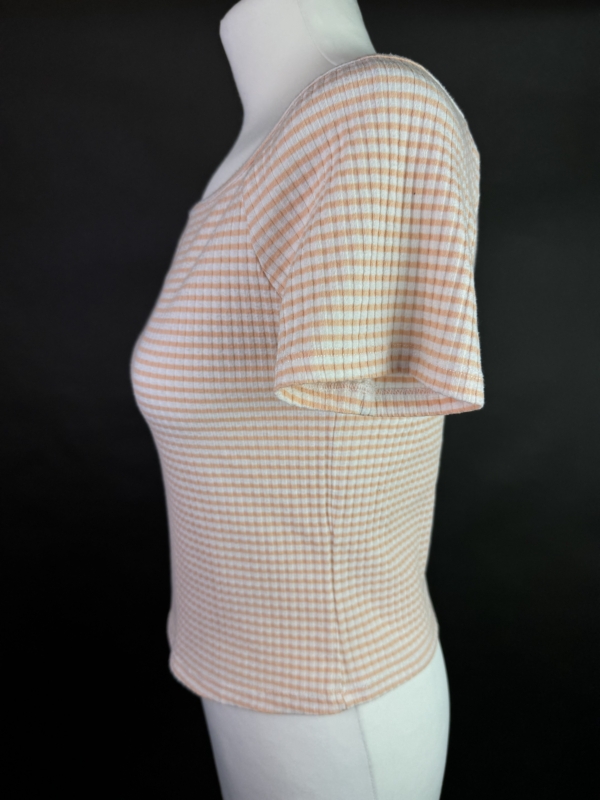 Marka: Stradivarius Wymiary: Długość całkowita: 45,5cm Szerokość od pachy do pachy: 41cm Długość rękawa od pachy: 3,5cm 100% bawełna