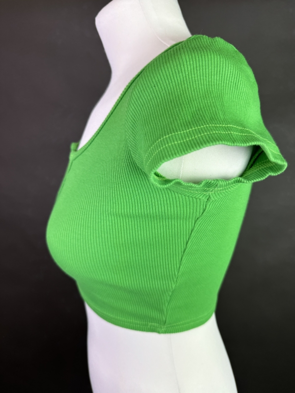 Marka: Cropp Wymiary: Długość całkowita: 39cm Szerokość od pachy do pachy: 38cm Długość rękawa od pachy: 3,5cm 93% bawełna 7% elastan