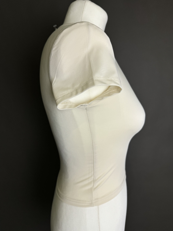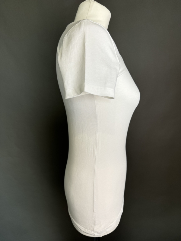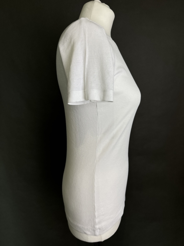 Wymiary: Długość całkowita: 60cm Szerokość od pachy do pachy: 36cm Długość rękawa od pachy: 6,5cm 95% bawełna 5% elastan